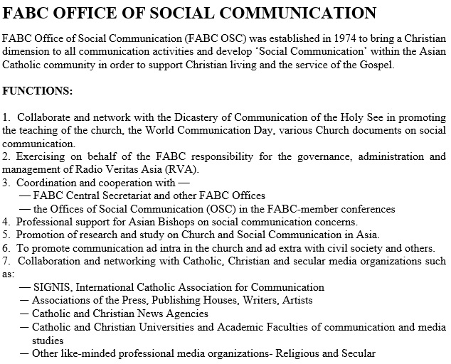 HomeAbout Us About Us Share FacebookTwitterWhatsAppViberLINECopy URLEmailPrint Related Articles Headline FABC OSC chairperson urges Catholic communicators to confront misinformation with truthful storytelling, hope Headline Asian bishops gather in Bangkok to deepen synodality ahead of 2026 FABC Plenary in Bali Headline Synodality meets Indigenous wisdom in new Asia-centered book Stay Connected180FansLike20FollowersFollow768SubscribersSubscribe Latest Articles Headline FABC OSC chairperson urges Catholic communicators to confront misinformation with truthful storytelling, hope Headline Asian bishops gather in Bangkok to deepen synodality ahead of 2026 FABC Plenary in Bali Headline Synodality meets Indigenous wisdom in new Asia-centered book Headline Asian bishops’ body eyes creation of ‘Office for Synodal Transformation’ Documents 29th Annual Bishops’ Meet Load more